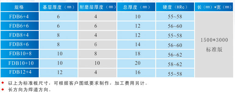 耐磨板有其獨特的特點 卓越之耐磨損特性(是普通碳鋼的13-15倍) 優(yōu)越之熔接強度 硬面層硬度分布均勻 具中等的耐沖擊性 優(yōu)越之耐熱性(600℃以下) 易于其他構(gòu)件相熔接 |